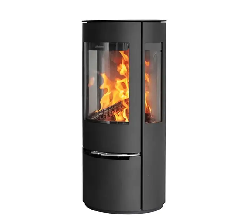 - Buet panoramaglass: Gir en bred, uhindret utsikt over flammene, og skiller seg fra ovner med flate eller mindre glasspaneler.