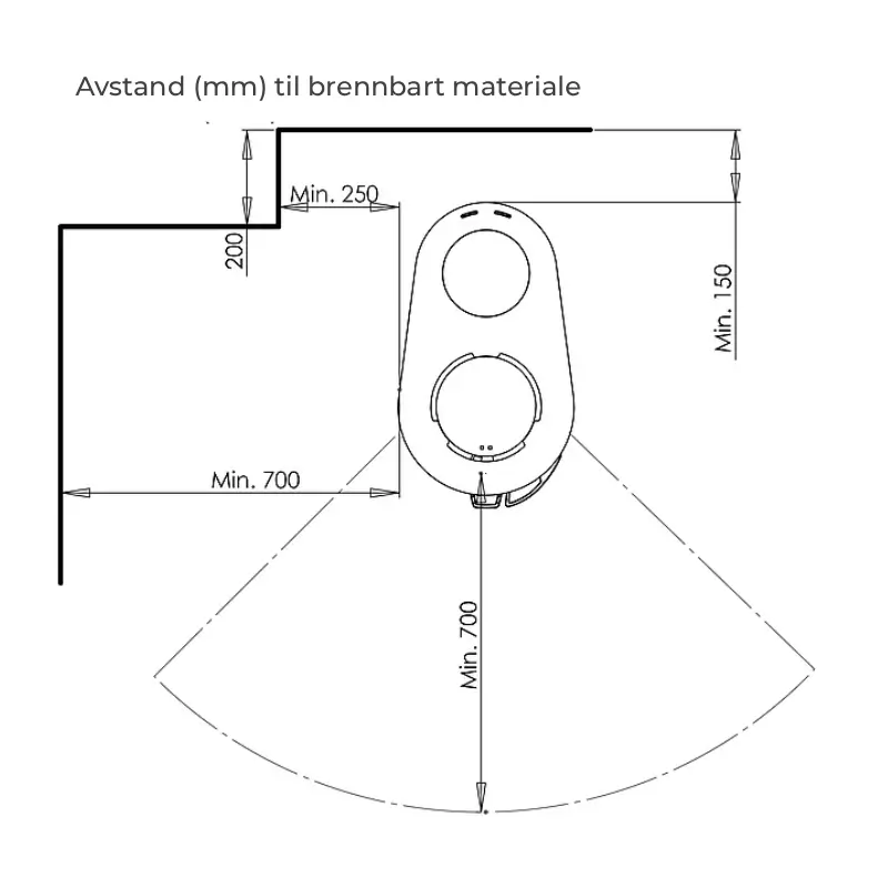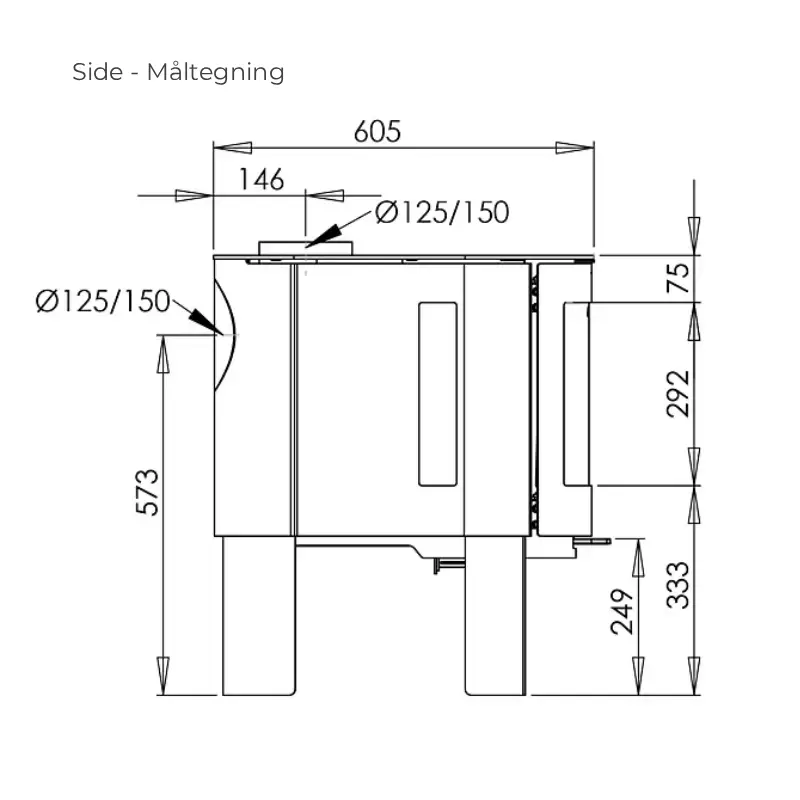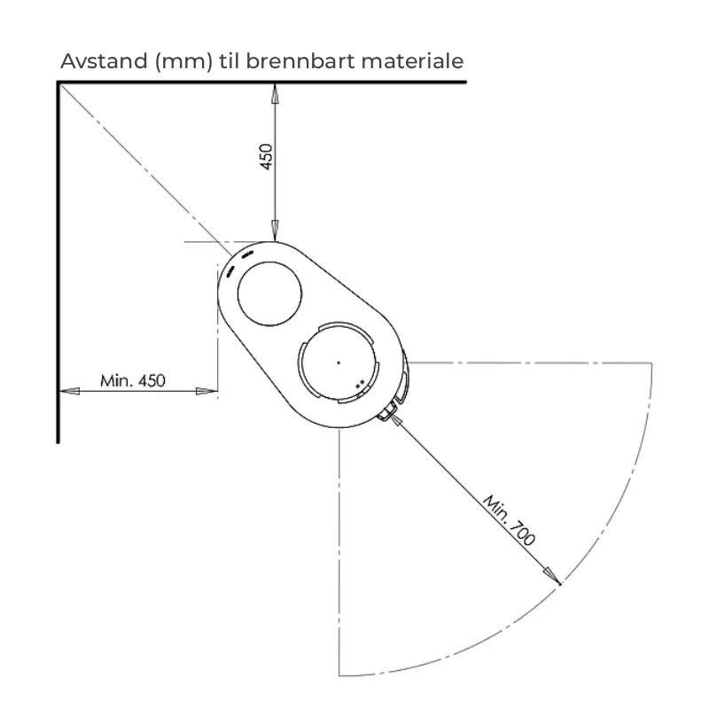 - 125 mm røykrør: Standard tilkobling for trygg og effektiv røykgassavtrekk.