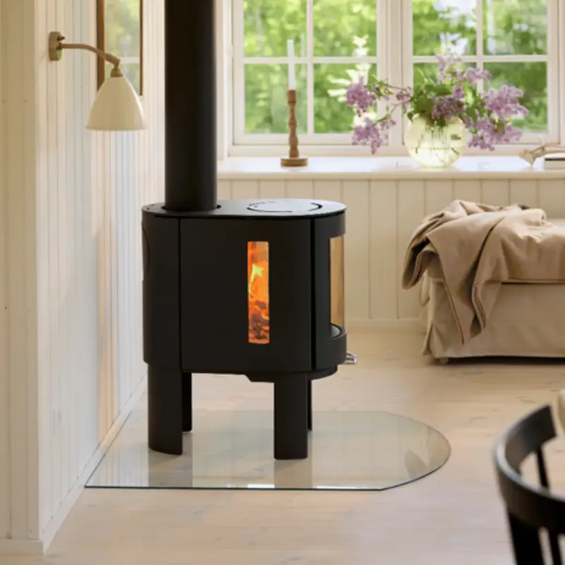 - Høyt varmeutgangsområde: Leverer 3-9 kW for å passe ulike romstørrelser, med lavt vedforbruk for lengre brennetider mellom påfyllinger.