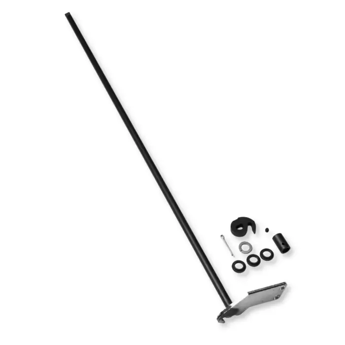 • Inkluderte komponenter:1 stk. håndtaksstang, 1 stk. sylinder, 1 stk. lukkekrok, 1 stk. pinolskrue, 1 stk. avstandsskive, 2 stk. bushings, 1 stk. splittpinne, 2 stk. håndtakksskruer, 1 stk. veiledning