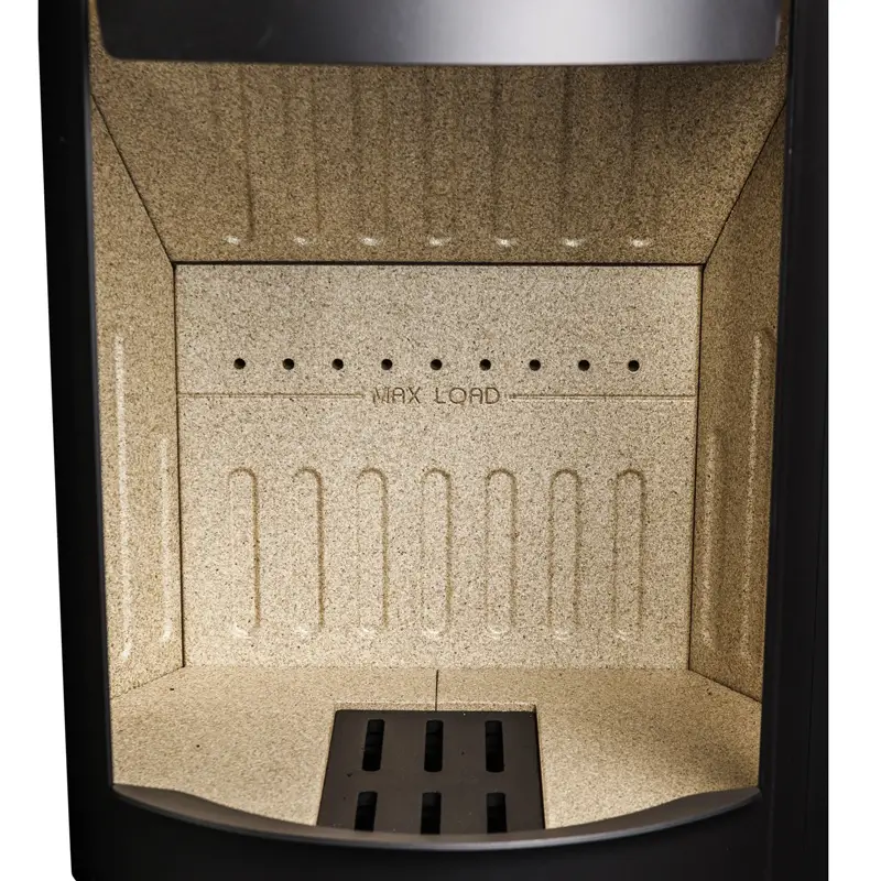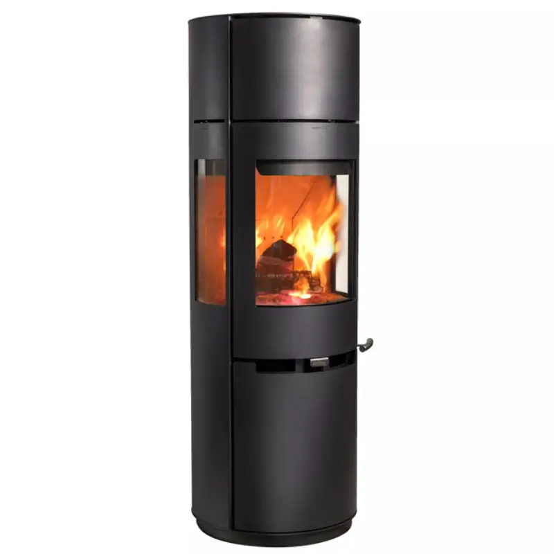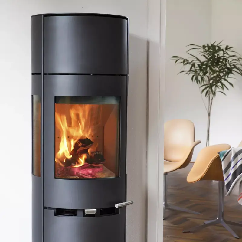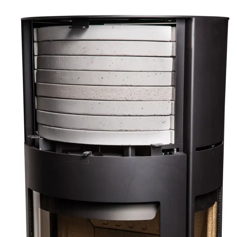 - Integrert 58 kg varmelagrende stein: Lagrer varme i opptil 12 timer etter fyring, og skiller seg fra ovner uten innebygd varmelagring.