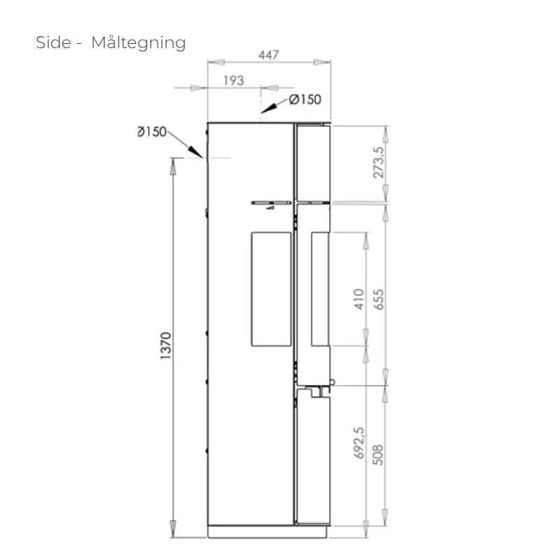 - Topp- eller bakre røykrørutløp: Tilbyr fleksibel installasjon med 150 mm diameter tilkobling, egnet for ulike oppsett.