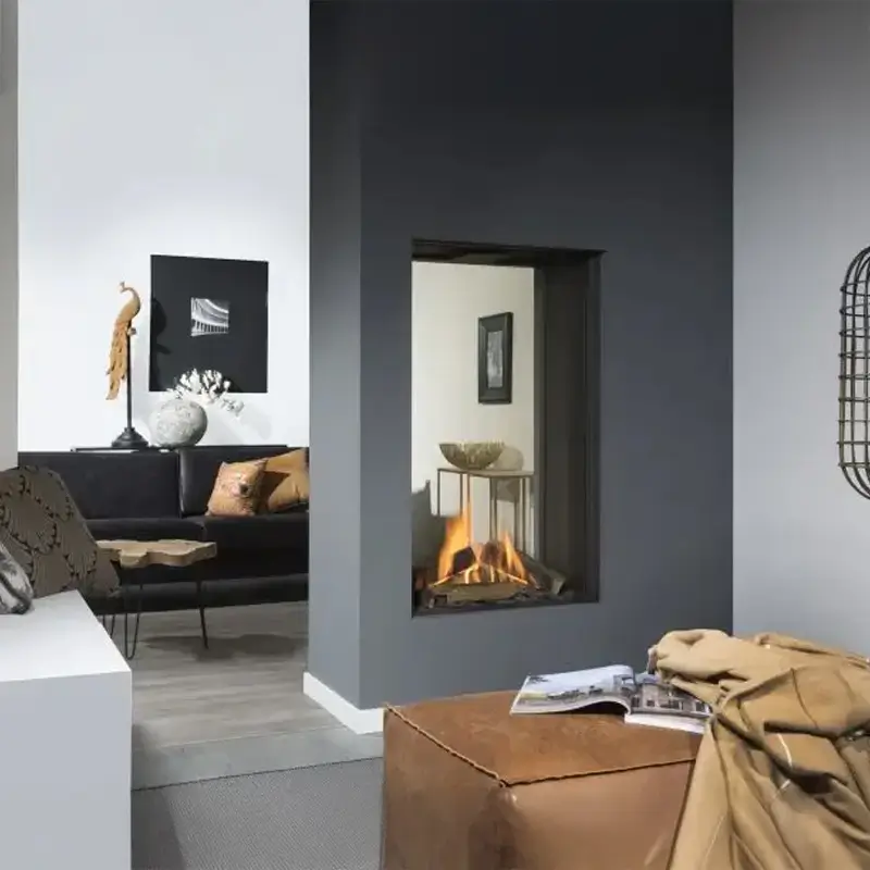 - Dobbelt innsyn – Gir panoramautsikt over flammene fra to rom, ideelt for åpne planløsninger.