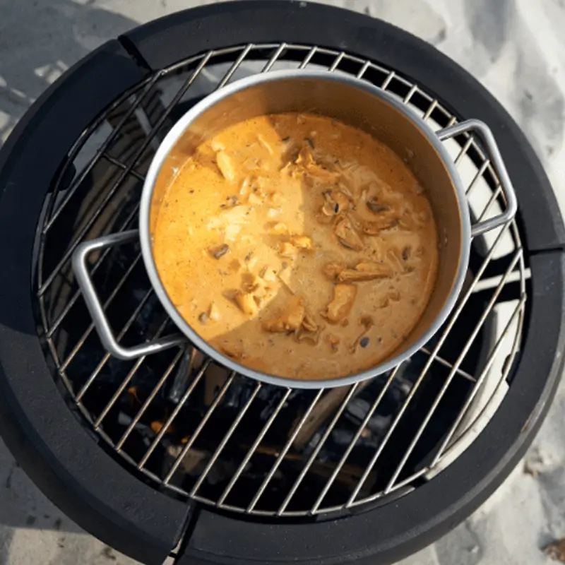 - Grillristfunksjonalitet: Muliggjør matlaging over bålet, og tilbyr allsidighet for grilling eller steking, en funksjon ikke alle bålpanner inkluderer.