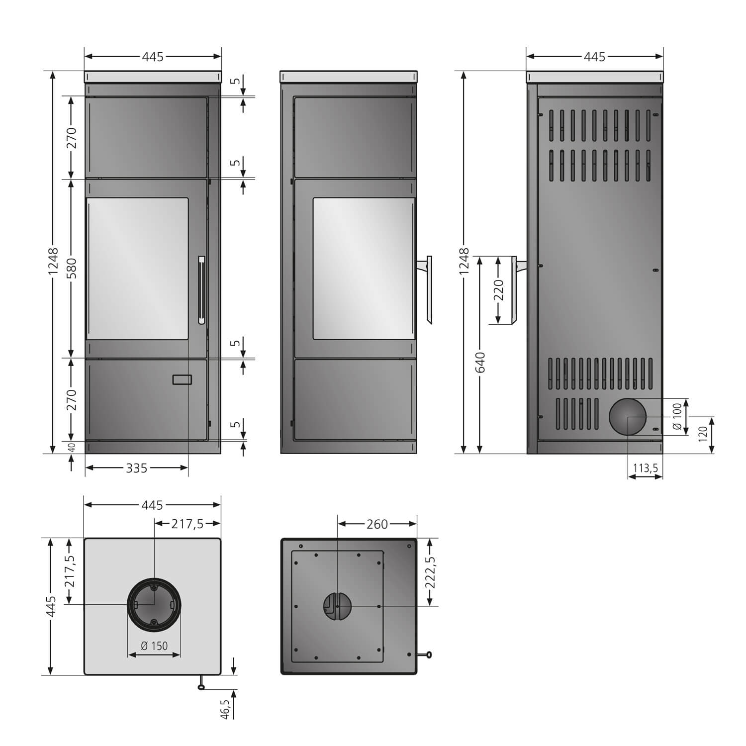 - 6 kW varmeeffekt for 115 m³ rom: Passer for mellomstore rom, med topp røykrørtilkobling på 150 mm for enkel oppsett.