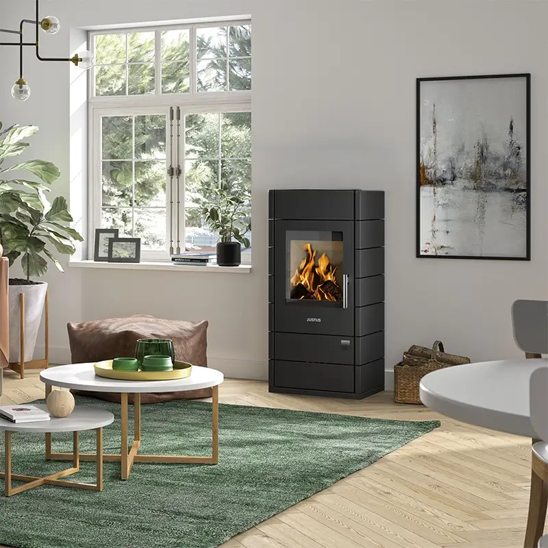 Justus Tova W+ Sort Stål peisovn er en pålitelig vedovn laget for moderne hjem, med en jevn varmeeffekt på 6 kW som kan varme opp rom på opptil 115 kubikkmeter. Den sorte stålfinishen gir et rent, samtidspreget utseende samtidig som den støtter døgnkontinuerlig drift for langvarig komfort. Med smart varmelagring innebygd, fortsetter den å avgi varme lenge etter at ilden har sluknet, noe som gjør den til et praktisk valg for koselig boing.