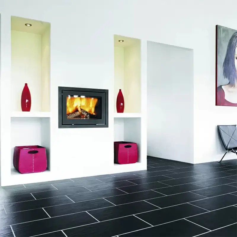 - Holdbar stålkonstruksjon: Bygget med robuste materialer og vermikulittforing, tilbyr den større levetid og varmebestandighet sammenlignet med grunnleggende innsatser, med alternativer for venstre- eller høyrehengslet dør for ekstra bekvemmelighet.