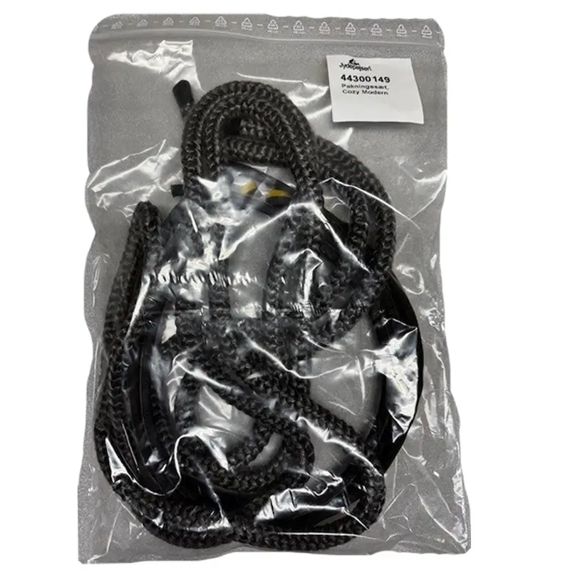 Pakningssett til dør og glass Ø12 mm, et premium pakningssett utviklet for å opprettholde en sikker forsegling rundt døren og glasset for optimal varmeeffektivitet. Dette essensielle tilbehøret forhindrer luftlekkasjer som kan redusere ytelsen eller tillate røyk å slippe ut, og er et must for regelmessig vedlikehold for å holde peisovnen din i god stand. Med sitt enkle monteringssystem gjenoppretter det den opprinnelige lufttette integriteten, og gir et tryggere og mer komfortabelt hjemmemiljø.