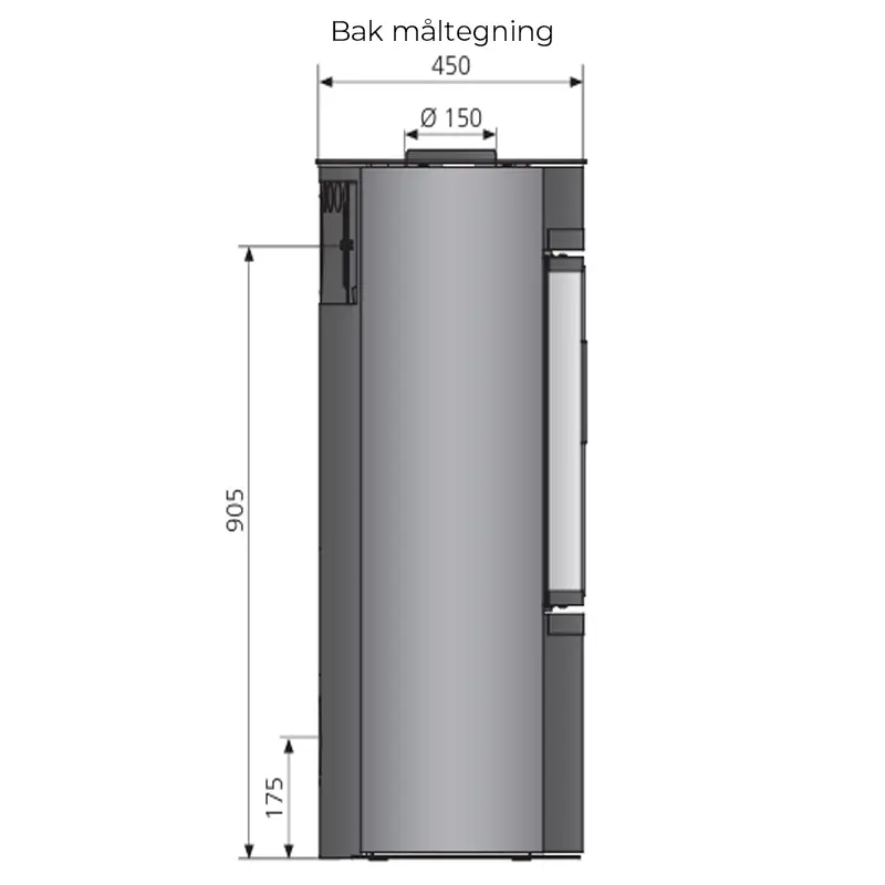 - Røykrørstilkobling bak eller på toppen – gir fleksibilitet ved montering.