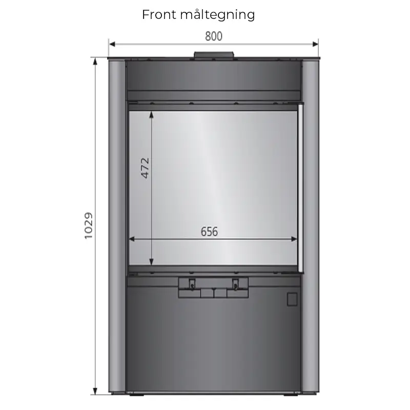 - Ekstra bred glassdør – gir panoramautsikt til flammene og skaper en lun og levende atmosfære.