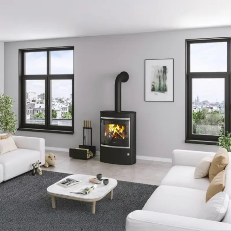 - Høy virkningsgrad (> 75 %) – gir mye varme med lavt vedforbruk.