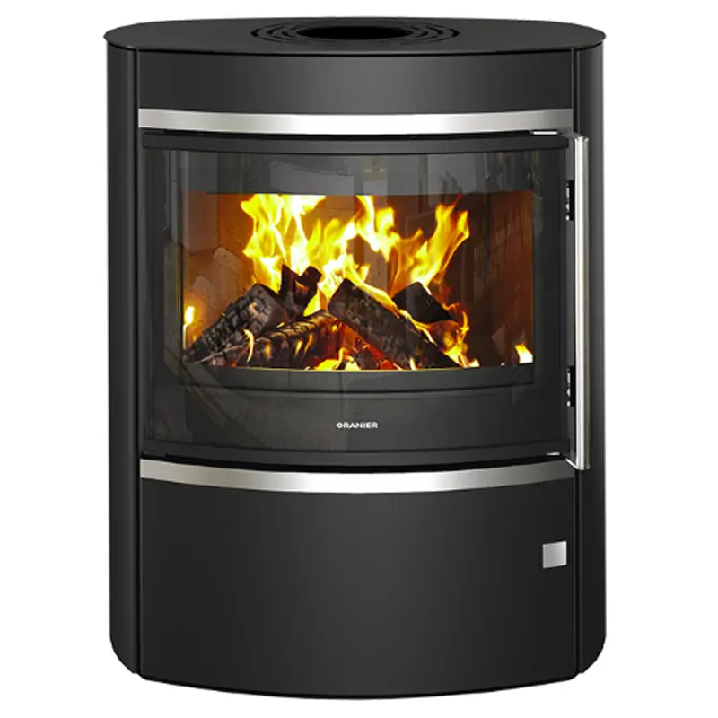 Oranier Feras sort stål er en stilren og kraftfull peisovn som kombinerer høy varmeeffekt med moderne uttrykk. Med heldekkende glassfront og lyst brennkammer i ildfast betong får du et tydelig og levende innsyn til flammene. Den nominelle effekten på 7,0 kW gjør ovnen godt egnet for stuer, hytter og rom på opptil ca. 144 m³. Konstruksjonen i sort stål og det rene designet gjør at ovnen passer inn i både moderne og klassiske interiører – og gir en effektiv varmekilde med lavt vedforbruk.