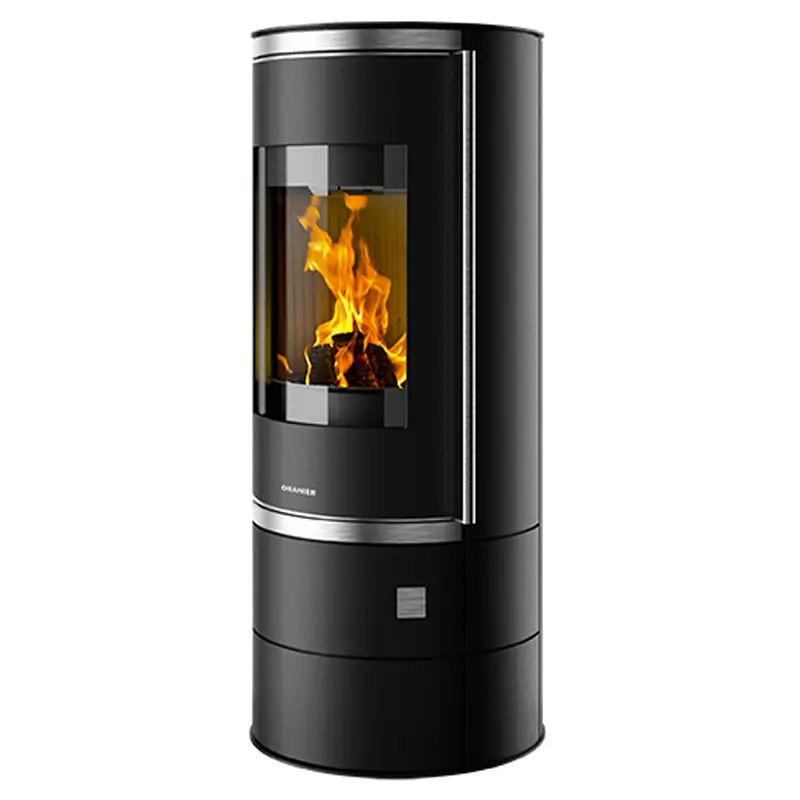 Oranier Ostro (W+) i sort stål er en moderne peisovn med ren formgivning og høy varmeeffekt. Med en nominell effekt på 6,5 kW og mulighet for utvidelse med opptil tre varmelagringssegmenter, gir den langvarig og behagelig varme – selv etter at flammene har slukket. Den passer perfekt til både moderne og tradisjonelle interiører, og er utviklet for å fungere godt i energieffektive boliger med behov for ekstern lufttilførsel.