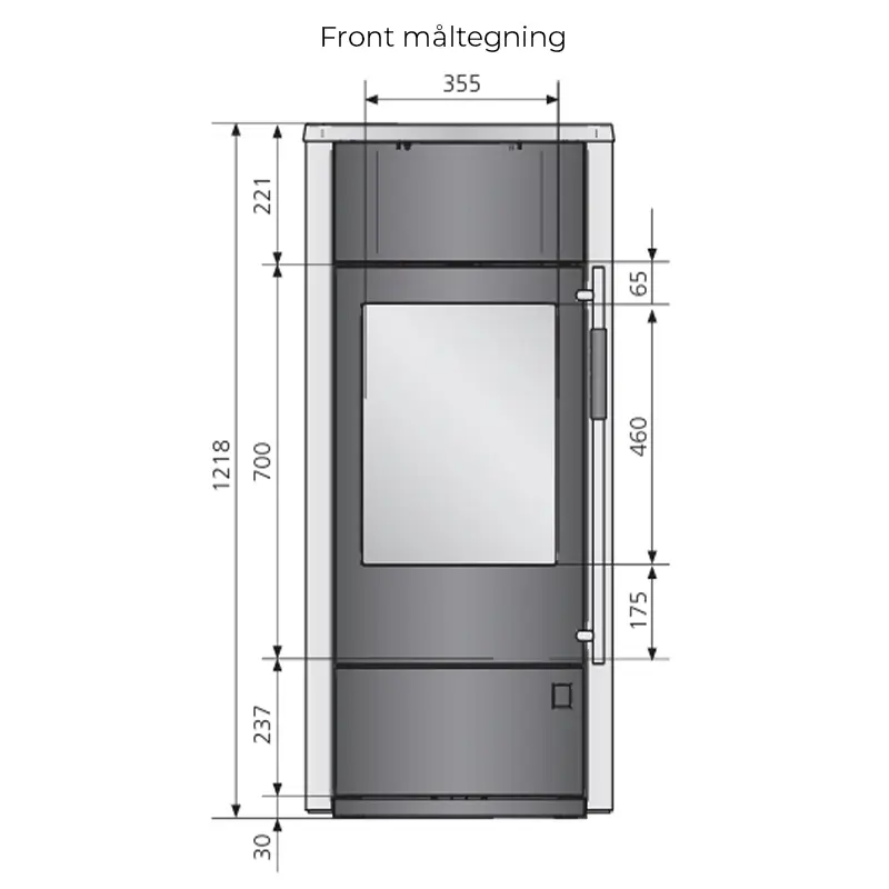 - Selvlåsende dør med kaldt håndtak – trygg og komfortabel betjening, selv under fyring.