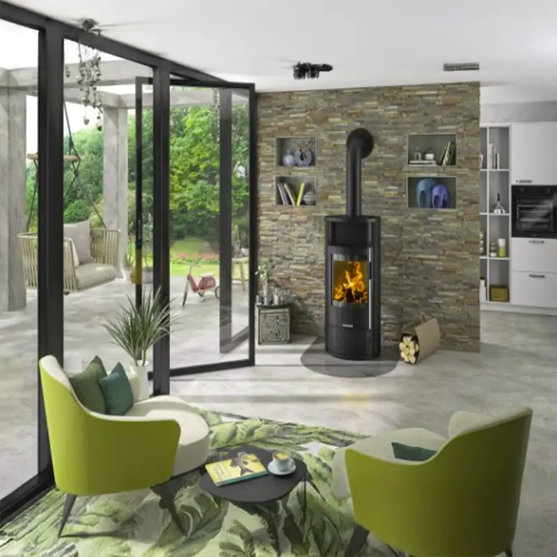- Trippel lufttilførsel – gir renere forbrenning og bedre utnyttelse av veden.