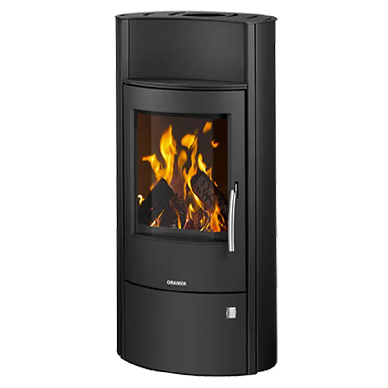 Oranier Pori 7 Sort Stål er en moderne peisovn med stilrent design i sort lakkert stål og stor panoramaglassdør som gir flott innsyn til flammene. Med en nominell varmeeffekt på 6,5 kW, et oppvarmingsareal på opptil 131 m³, og en virkningsgrad på over, gir den effektiv oppvarming med lavt vedforbruk .Den plassbesparende utformingen, kombinert med varmehylle, gjennomtenkt luftsystem og brukervennlig håndtak, gjør den til et trygt og komfortabelt valg for moderne hjem.