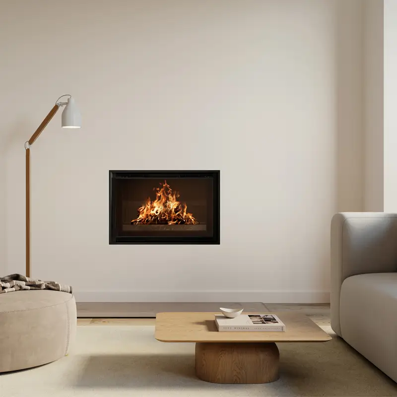 - Plassbesparende 49×75-format – ideelt for ettermontering i eksisterende peisåpninger.