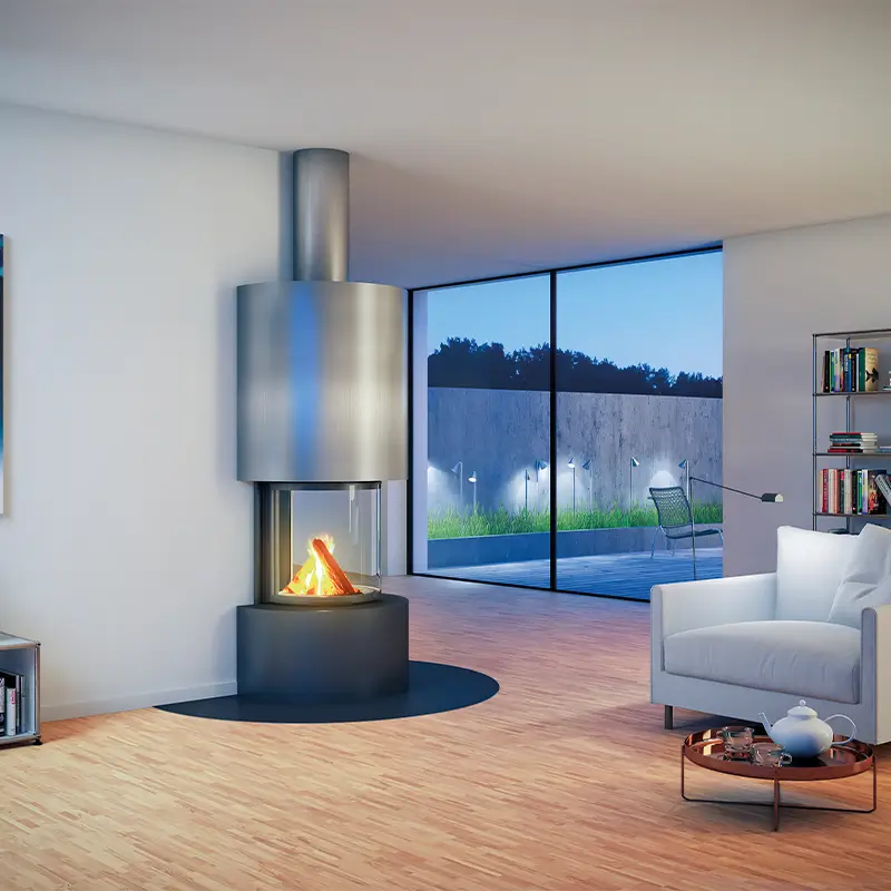 Med elegant utforming, sveitsisk presisjon og fleksible monteringsmuligheter, leverer ODEON både funksjonalitet og stil. Den har lavt vedforbruk, ren forbrenning og kan plasseres fritt i rommet, mot vegg eller i hjørne – noe som gjør den velegnet for både moderne boliger og arkitekttegnede hjem.