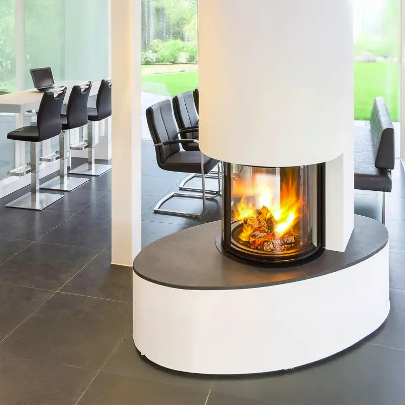 Er en stilren, buet peisinnsats med 270° panoramaglass som gir en unik flammeopplevelse fra flere vinkler. Den kombinerer sveitsisk kvalitet med moderne design og passer like godt som frittstående, mot vegg eller i hjørne. Med lavt vedforbruk, høy varmeutnyttelse og fleksibel plassering er den ideell for moderne hjem som ønsker både funksjon og form.