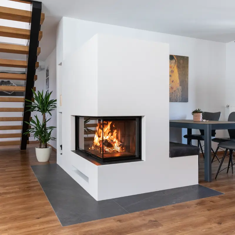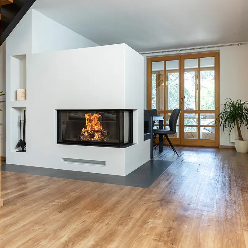 Gir et spektakulært flammebilde og maksimal synlighet fra rommet. - Tosidig hjørneutførelse