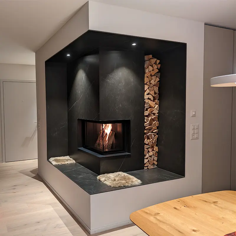 Gir bredt innsyn til flammene fra to vinkler – skaper et varmt og innbydende midtpunkt. - Høyre og venstre modellvalg