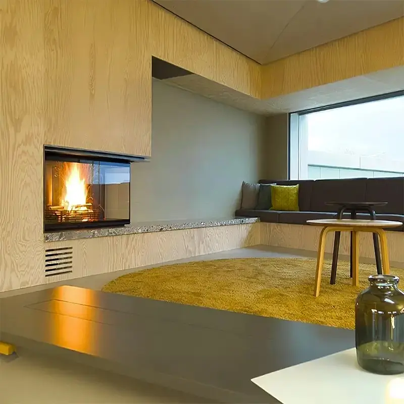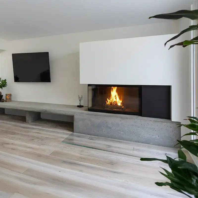 - Tosidig innsyn til flammene gir en imponerende visuell effekt og gjør peisen til et naturlig midtpunkt i rommet.